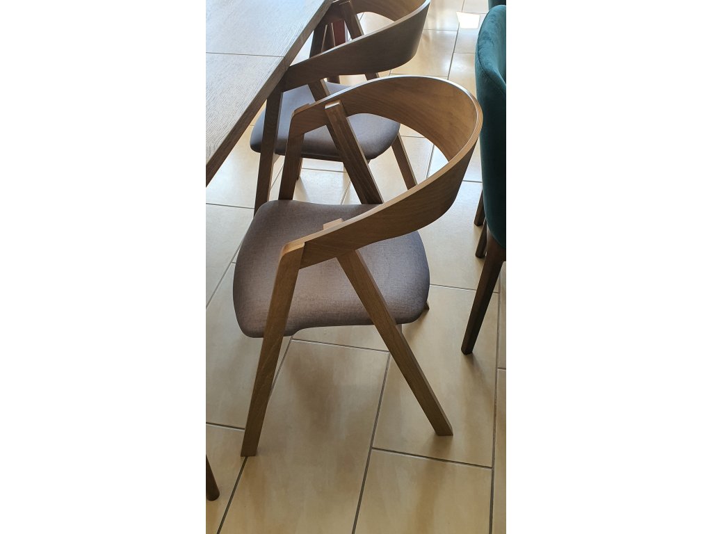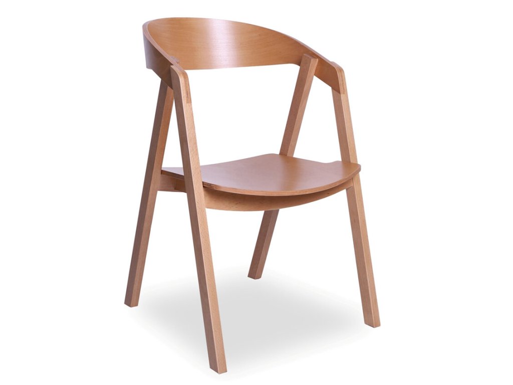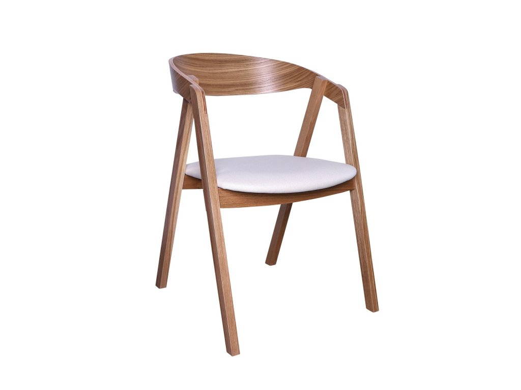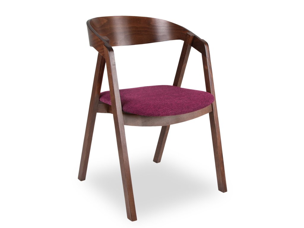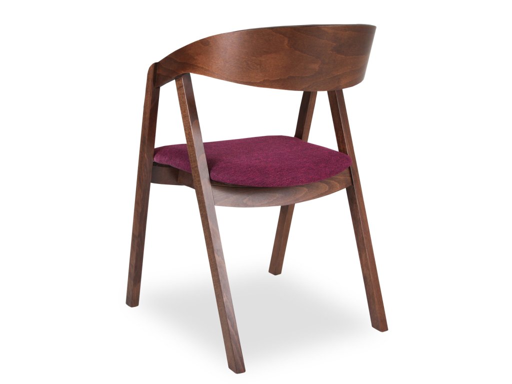 Drevená stolička s čalúneným sedákom, pohodlné sedenie, pevná celodrevená konštrukcia.